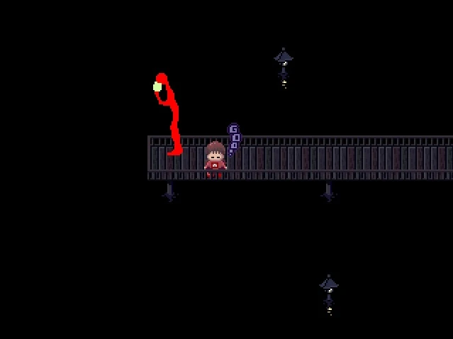 Opcional: La presionar "1" el estómago de Madotsuki gruñe y se observa unas letras que salen de su estómago.