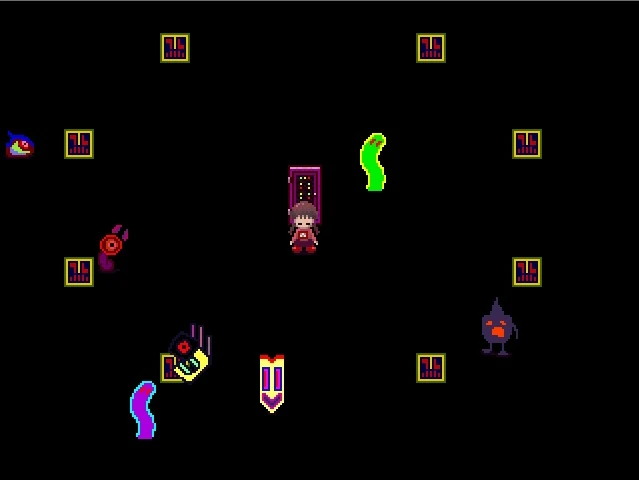 Es uno de los 12 lugares originales de Yume Nikki, accesible a través del Nexo, entrando por la puerta que está en posición de las 2:00 o 14:00 aproximadamente.