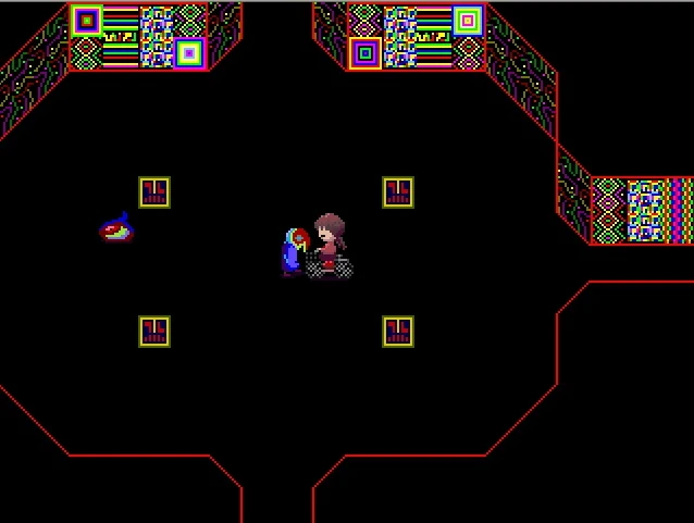 Involuntario: Madotsuki se muestra definida por luces. También parece que se puede ver su esqueleto.