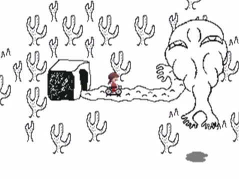- Podría ser el "hermano" muerto de Madotsuki, debido a que pudo morir por TRAP Syndrome, y que Madotsuki choco un auto en el que estaban andando y el golpe causo este problema y Madotsuki se arrepiente de haber chocado y lo recuerda constantemente, aparece en el desierto blanco tal vez por que esta área representa la muerte.