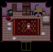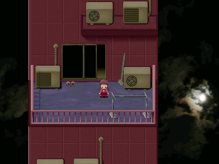 (и заканчивает) игру. Эта комната и балкон являются единственными местами, в которые есть доступ для Мадотсуки в реальном мире. Хотя Мадотсуки может выйти на балкон, выйти из двери она не может, лишь покачивает головой. Это может быть либо из-за ее типажа "Хикикомори" либо потому, что Мадотсуки физически не может её открыть.