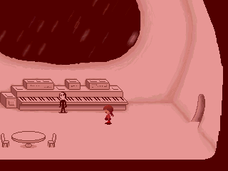 Description: Madotsuki awakens to the sound of an alarm going off. When she gets out of bed, the red emergency lights are flashing and the Spaceship is losing altitude. Masada will be panicking at the organ, and after about 15 seconds a cutscene of the ship crashing on Mars will play.