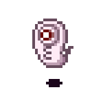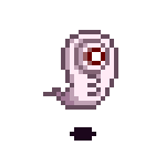 It looks like a typical ghost (bearing similarities to Follony and the Nopperabou Ghost, which also gives an effect) with one red eye in the middle of its forehead. Its lips are puckered up, giving it a silly expression similar to someone pretending to be innocent after making a mistake. It moves quite fast and flees from Madotsuki. The easiest way to catch it would be by using the Cat or Stoplight effects. It also reacts normally to the Knife.