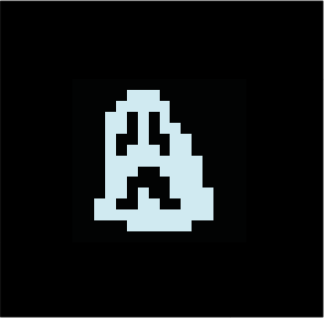 It is a light cyan blob creature with a sad or distressed expression on its face. It moves very little, inching across the floor only on occasion.