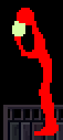 Strober appears to be a tall and skinny figure, largely resembling a human. Their body flashes red, pale pink and purple. They hold a round object that is light yellow in color, which they appear to be eating.