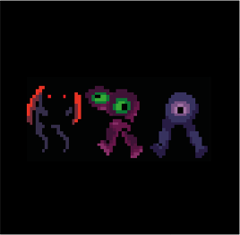 When Madotsuki first enters the traincar from the Dense Woods, a passenger with red eyes, a black body, and orange arms will be sitting on the left seats. If Madotsuki enters the traincar from the Witch's Island, there will be two passengers sitting on the right seats. One of them has two eyes and a maroon body, and the other one has a single eye and a purple body. Both of them have long black hair.